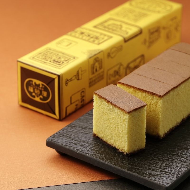 採用精選雞蛋、砂糖、糖漿和小麥粉的簡單材料,全程不用攪拌機,完全靠師傅手感攪拌,製作出口味道地且香甜綿潤的蛋糕點心。長崎蛋糕底砂糖結晶顆粒的粗糖,是攪拌蛋糕材料時留下來的,也是福砂屋長崎蛋糕的特徵。請在品嚐長崎蛋糕時,一起享受蛋糕底砂糖「顆粒感」的樂趣。