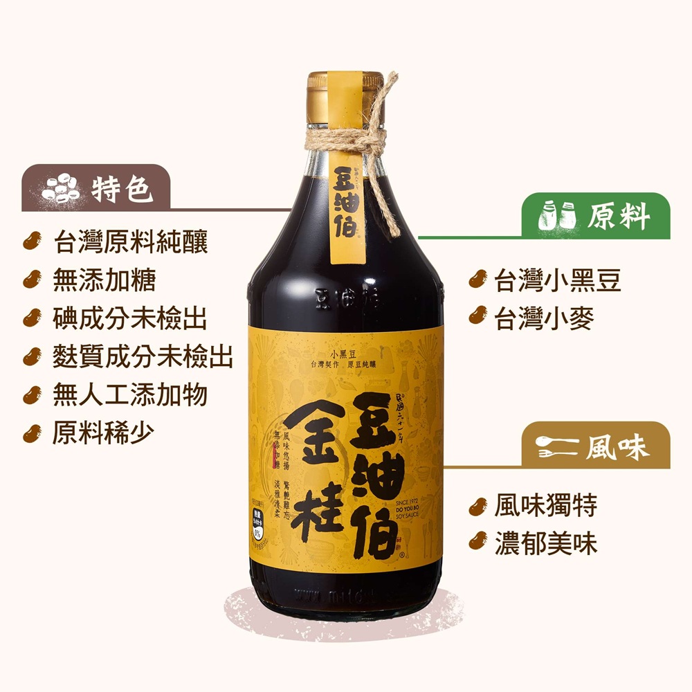 豆油伯 | 金桂釀造醬油500ml (無添加糖黑豆醬油)