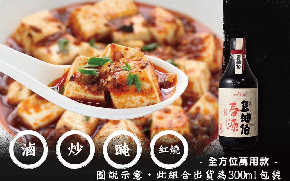 『春源』家傳商號,豆油伯以此為名,全新推出春源醬油,全瓶選用精選台灣黑豆純釀製成,用好的台灣原料,釀出好的台灣醬油,長時間料理醬油推薦:適合滷煮、紅燒料理,支持台灣農民契作黑豆釀造,風味醇厚有層次。
