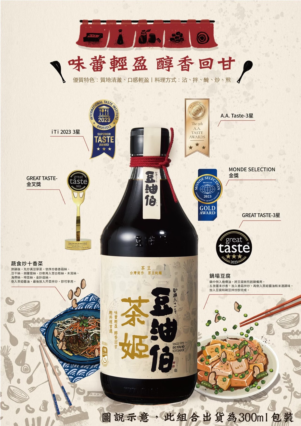 「茶姬醬油」保有大豆特有的醇香回甘,而其輕澈質地,一如大豆初芽、結莢時青春奔放的年輕姿態,淺嚐一口便能感受.豆油伯於今年暑假推出可與醬油、醬料沾拌品嚐的「茶豆冰淇淋」,意外引發消費者關注