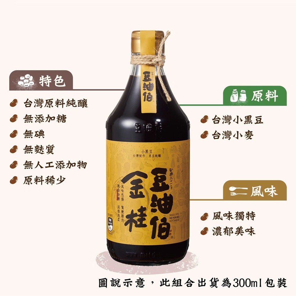 豆油伯 | 金桂釀造醬油300ml (無添加糖黑豆醬油)