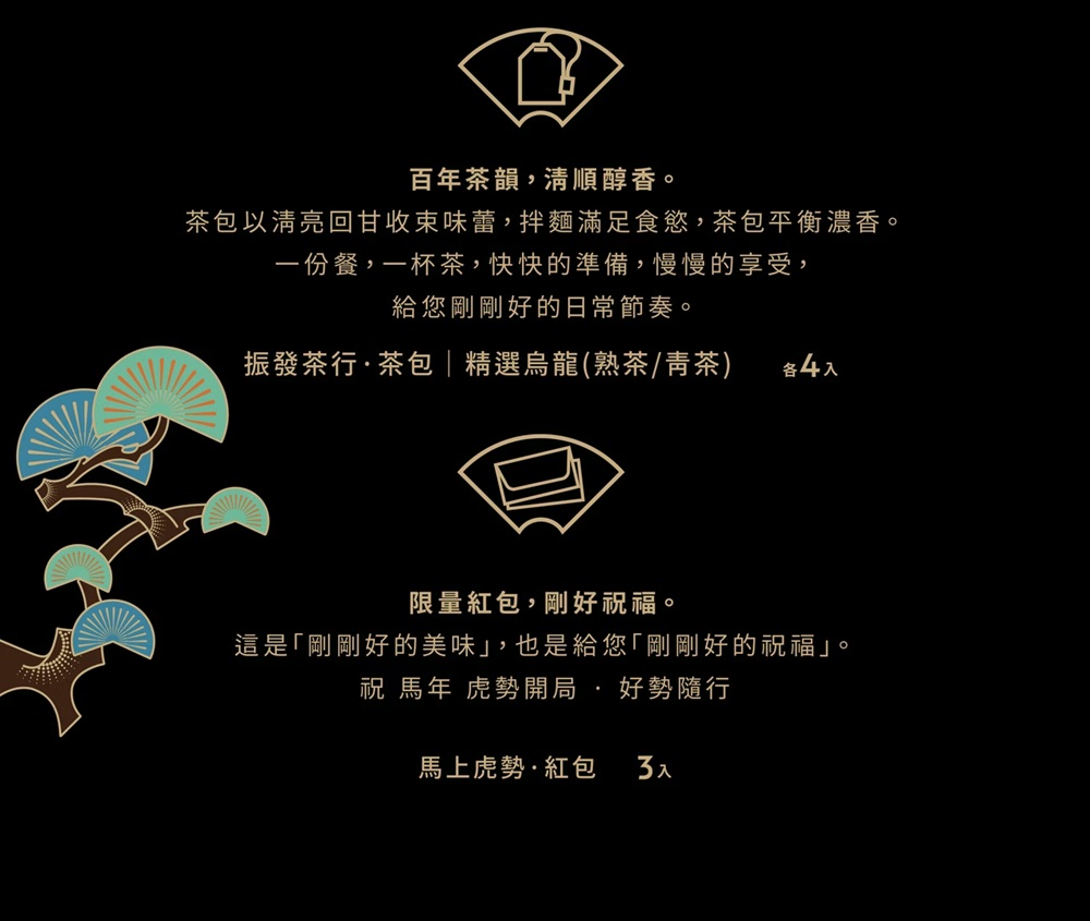 櫻桃鴨油拌麵 x 2 包 + 三杯薑香素麵 x 2 包