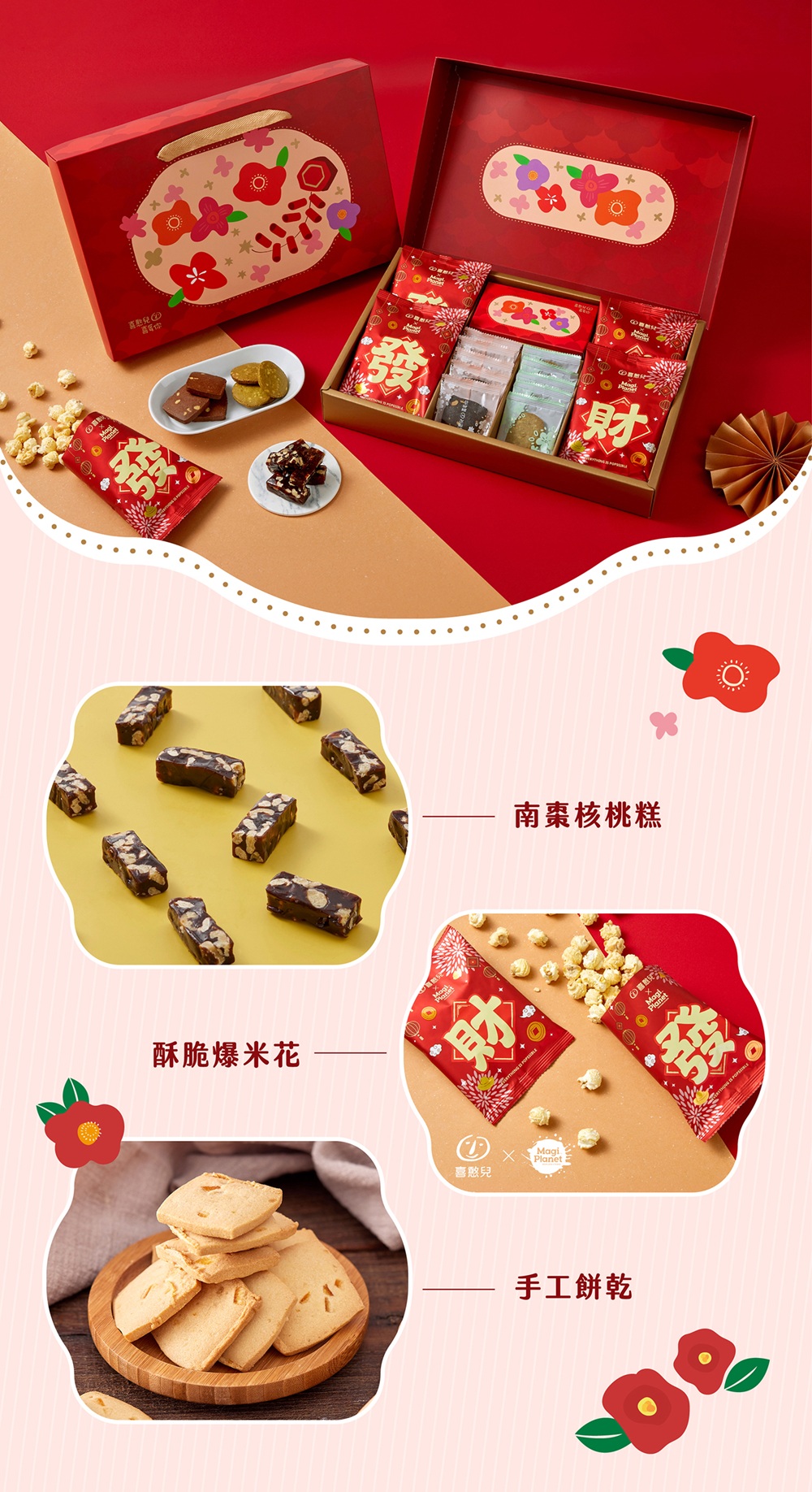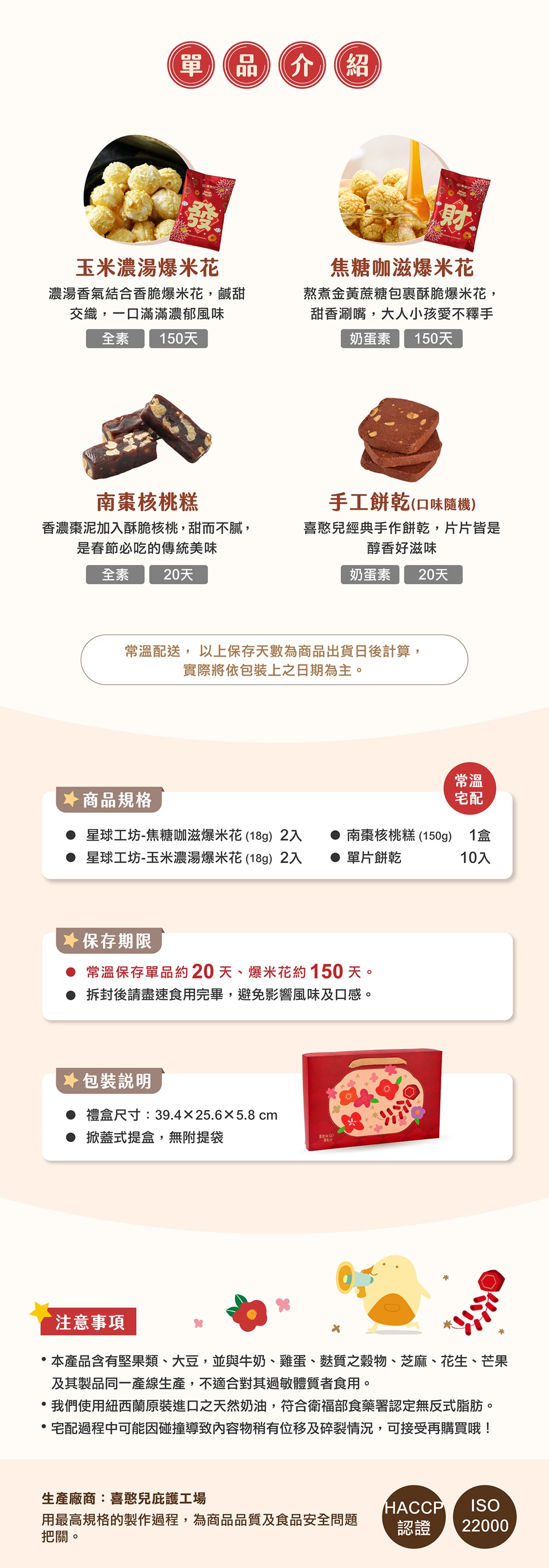 春節預購【喜憨兒】春聚(A)爆米花禮盒|核桃糕 手工餅乾