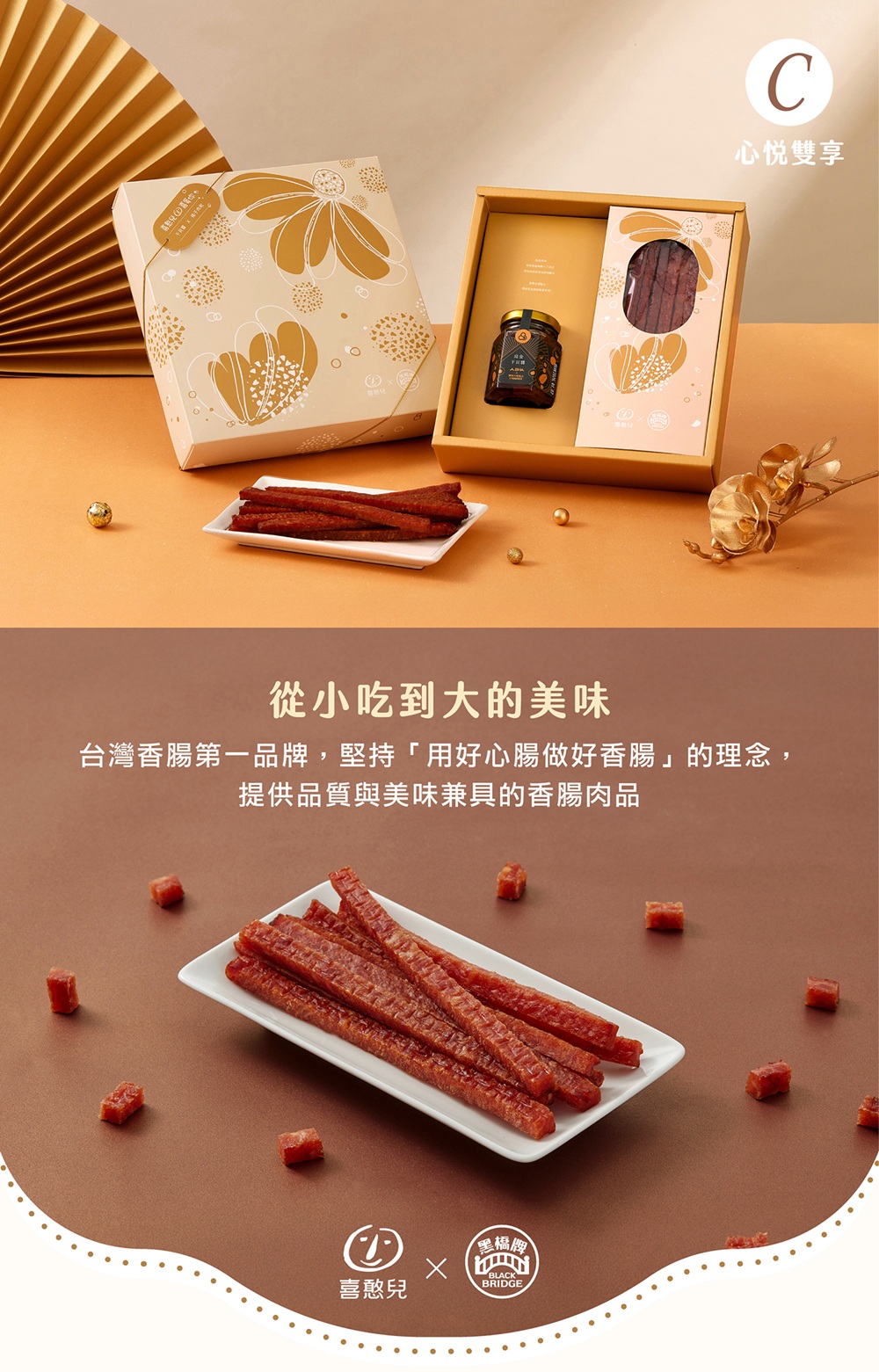 春節預購【喜憨兒x黑橋牌】心悅雙享C年節禮盒∣肉乾∣干貝醬