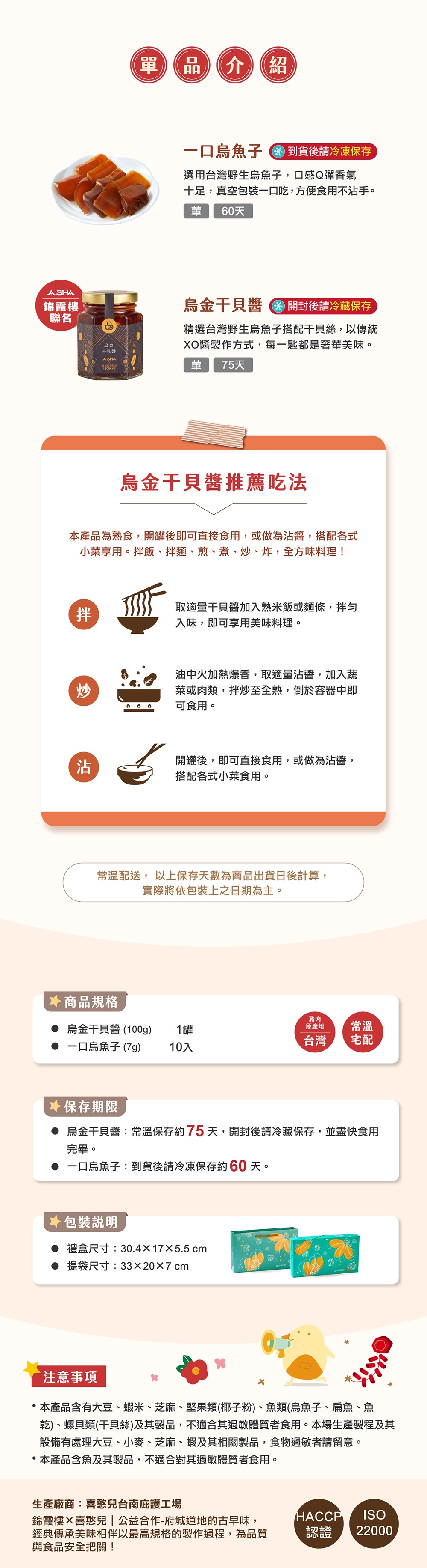 春節預購【喜憨兒】心悅雙享E年節禮盒∣一口烏魚子∣干貝醬