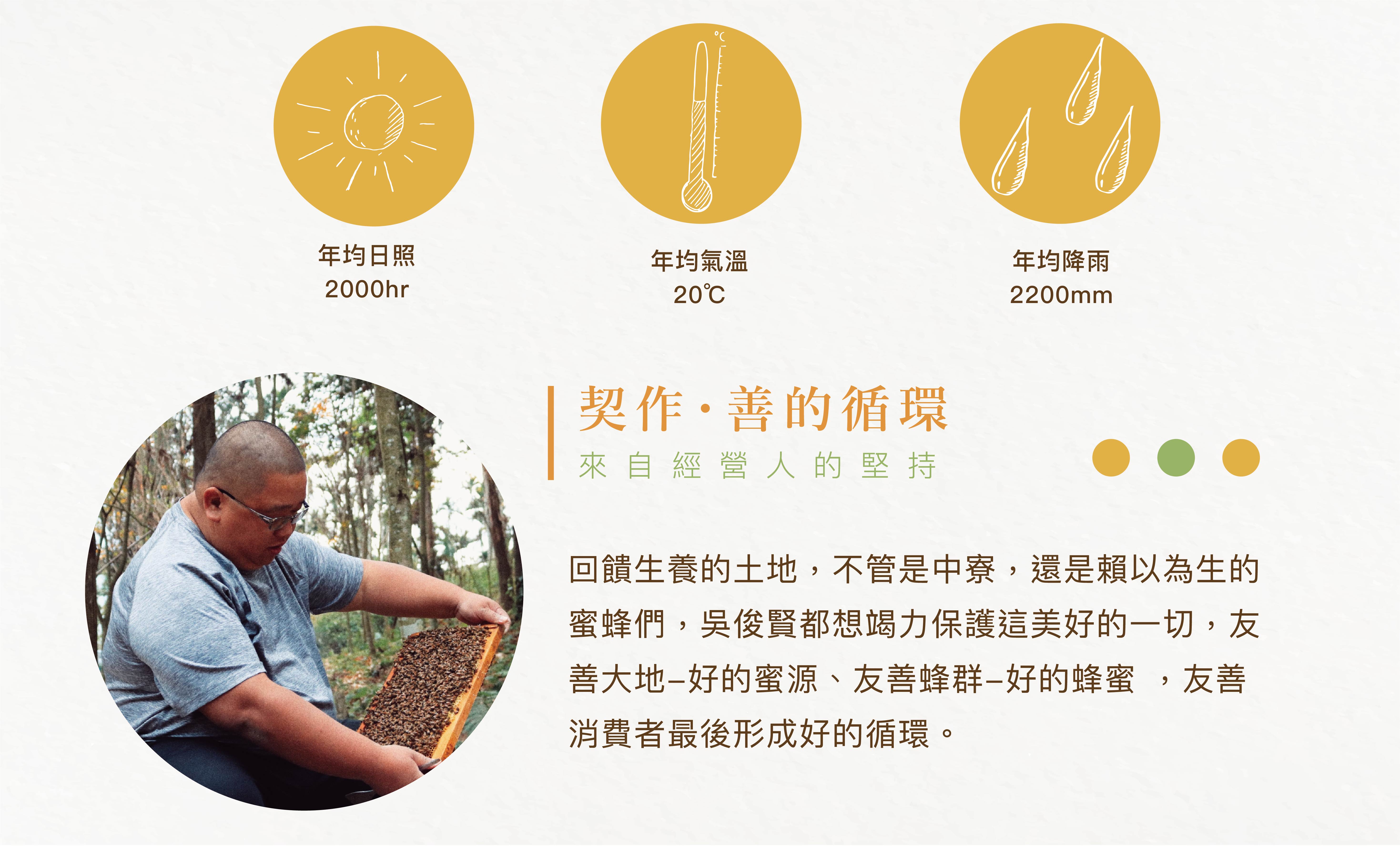 採自南投中寮福眼花盛開時,花期只有5-7天,嚴格限定氣溫需達28-30度才能採收,採集難度較高,純度高、香氣濃,含龍眼花酵素,是天然的維他命。