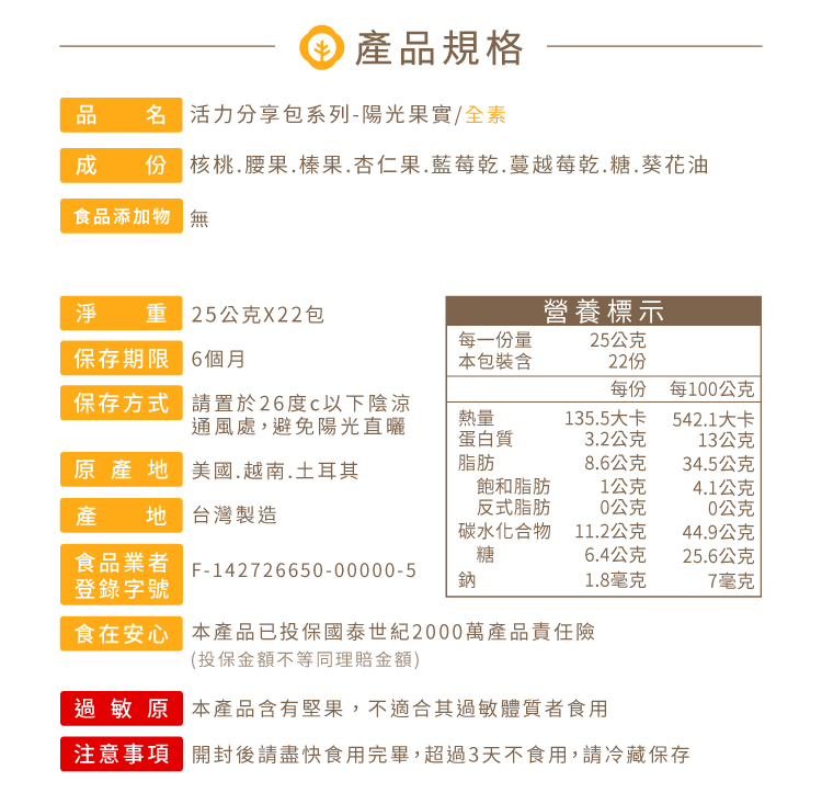 【每日優果】活力分享包系列-陽光果實 25G/包 每盒22包