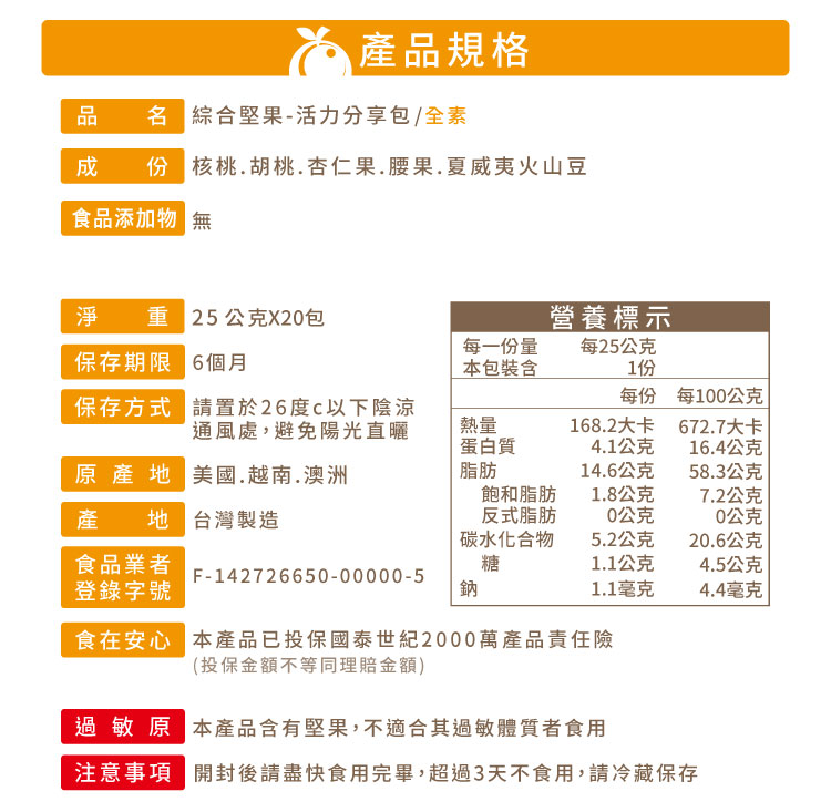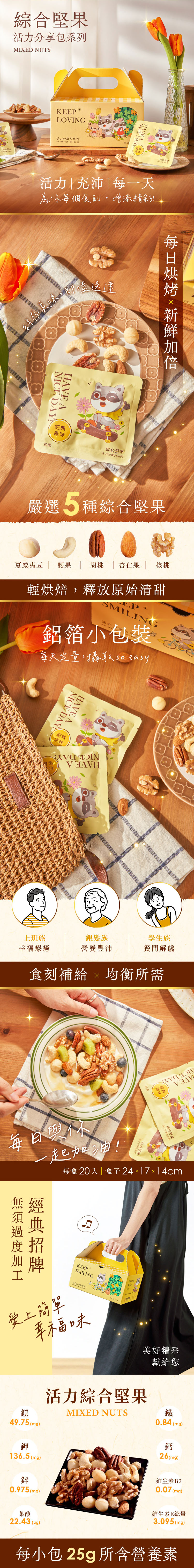【每日優果】活力分享包系列-綜合堅果 25G/包X每盒20包