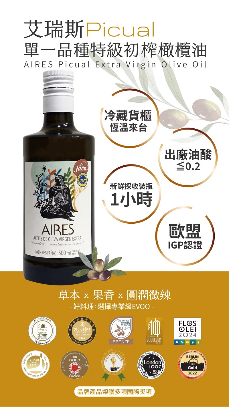 ▲艾瑞斯Picual單一品種特級初榨橄欖油 10大特色