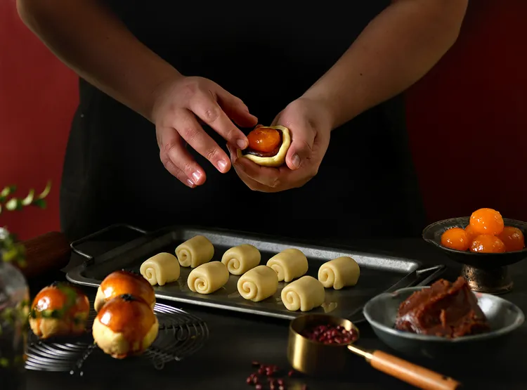 古銅色光澤展現焦糖化的酥脆外皮,100%契作在地小農紅豆,鹽漬熟成28-30天的飽滿鹹蛋黃 , 特殊烘烤手法, 平凡中創造不凡,譜寫30年後傳統,世界麵包大師經典鉅獻。