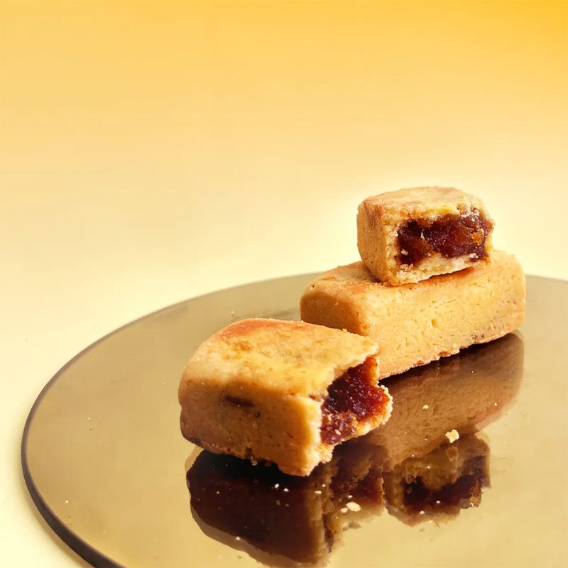 擁有『芒果界的LV』之稱的臺灣特有種夏雪芒果煮成,同時具有土芒果的濃厚香氣、愛文芒果的細緻,及金煌芒果的甜度,煮成的果醬最後加入愛文芒果果乾,由天然發酵奶油製成的餅皮包裹,口感與風味雙重驚豔,唇齒留香。