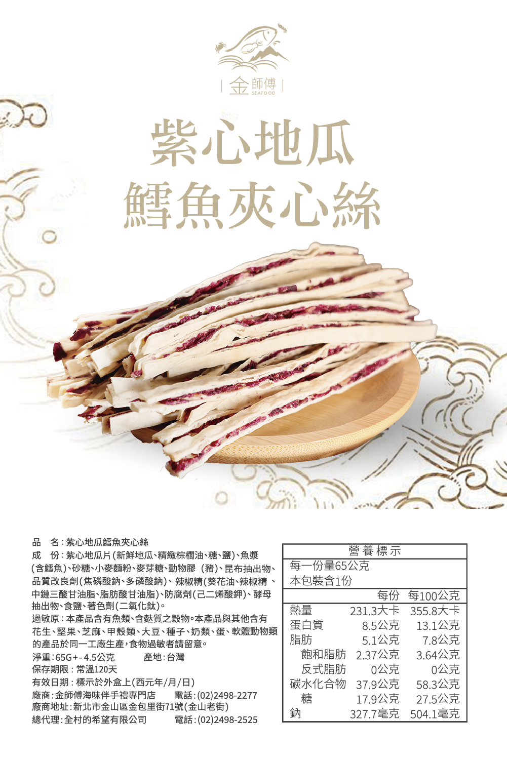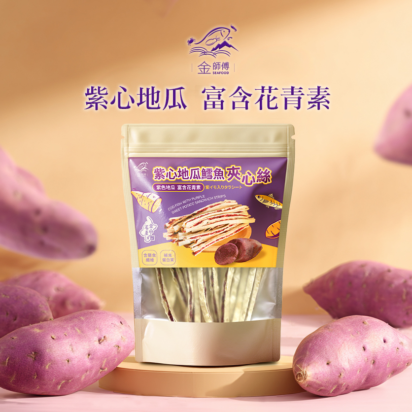 【金師傅】紫心地瓜鱈魚夾心絲 8袋/箱