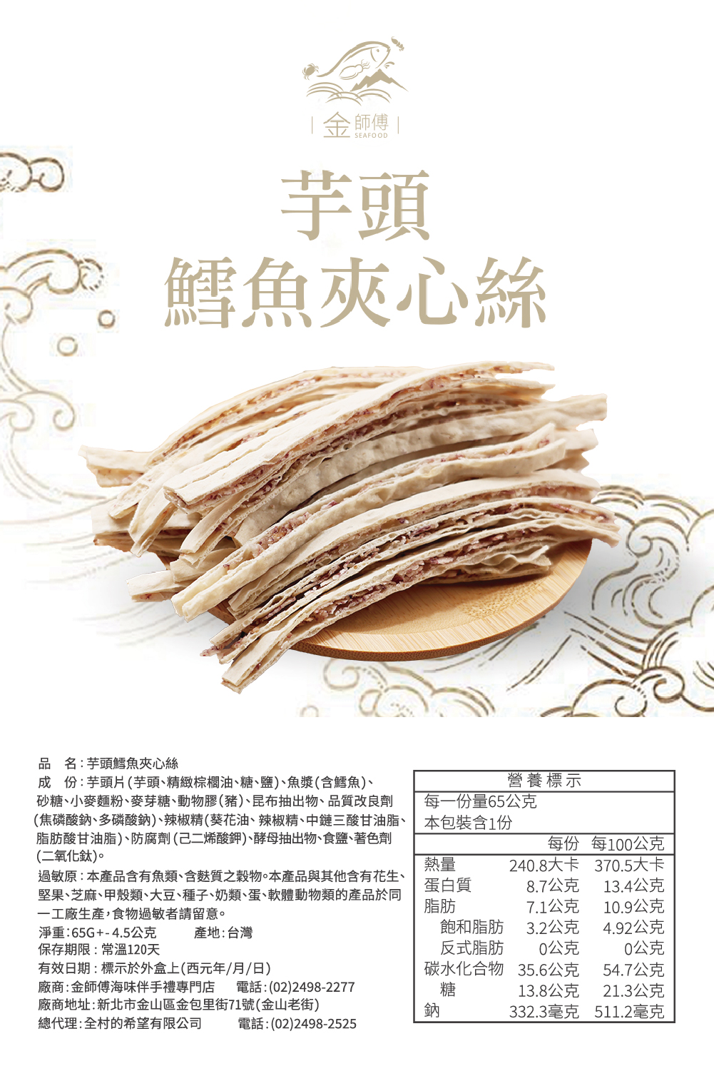 【金師傅】芋頭鱈魚夾心絲 8袋/箱