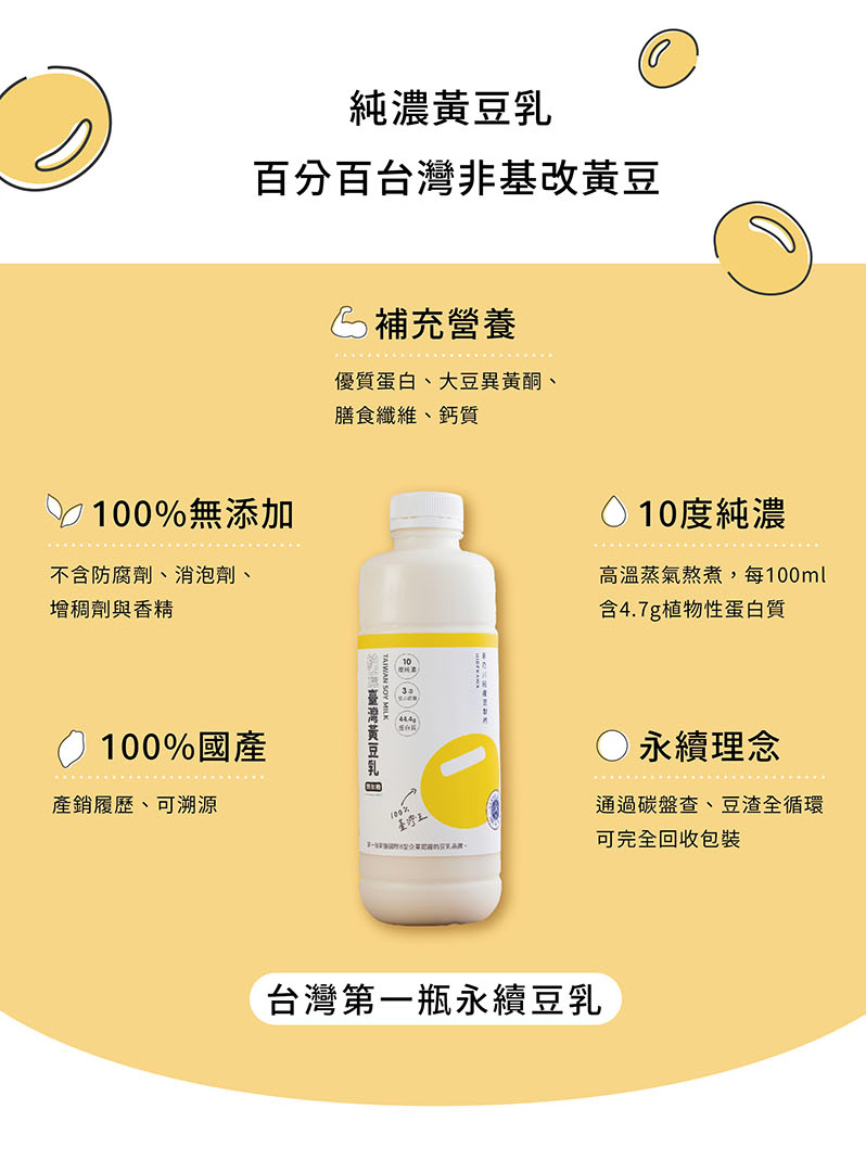 純濃黃豆乳原料:純水、臺灣非基改黃豆