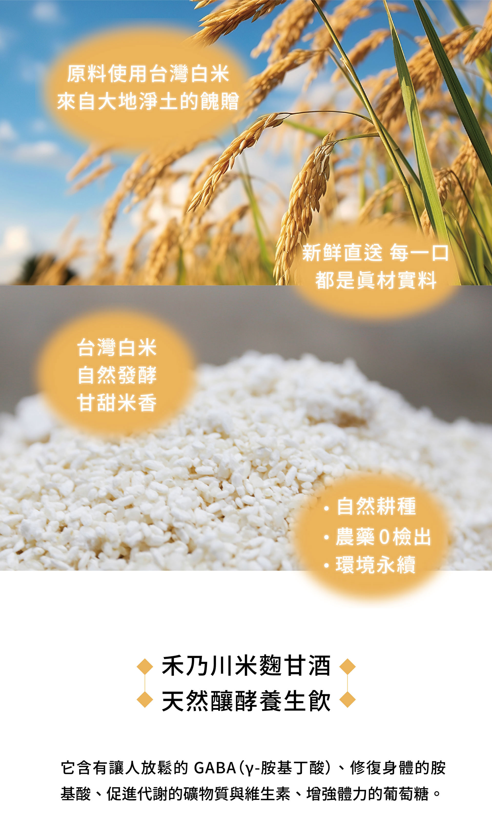 原味米麴米潤飲原料:禾乃川米麴、糯米、純水