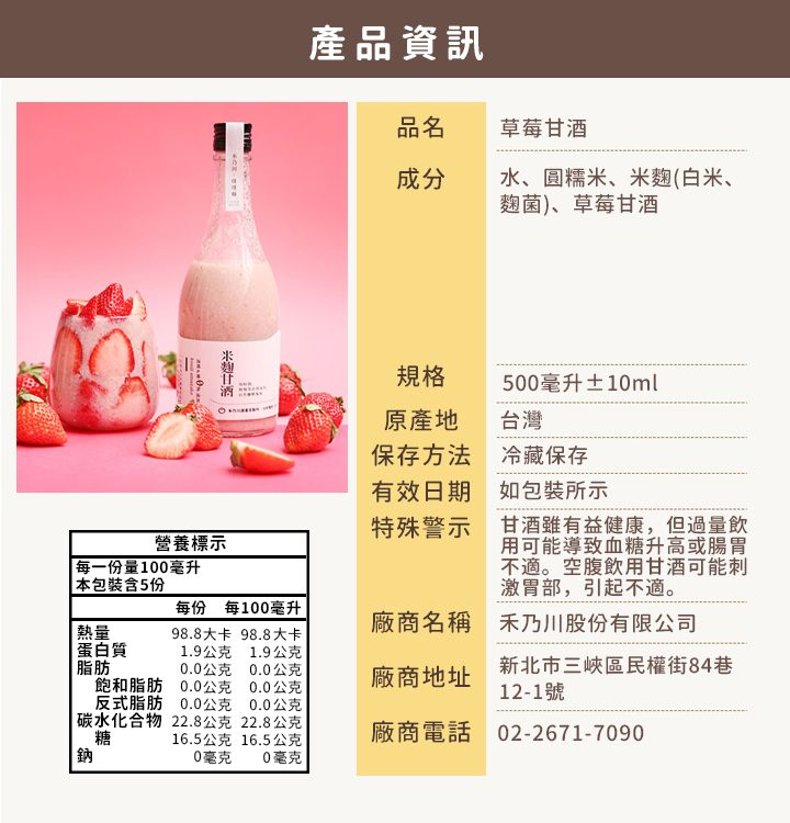 草莓米潤飲原料:純水、圓糯米、草莓、米麴(白米、麴菌)