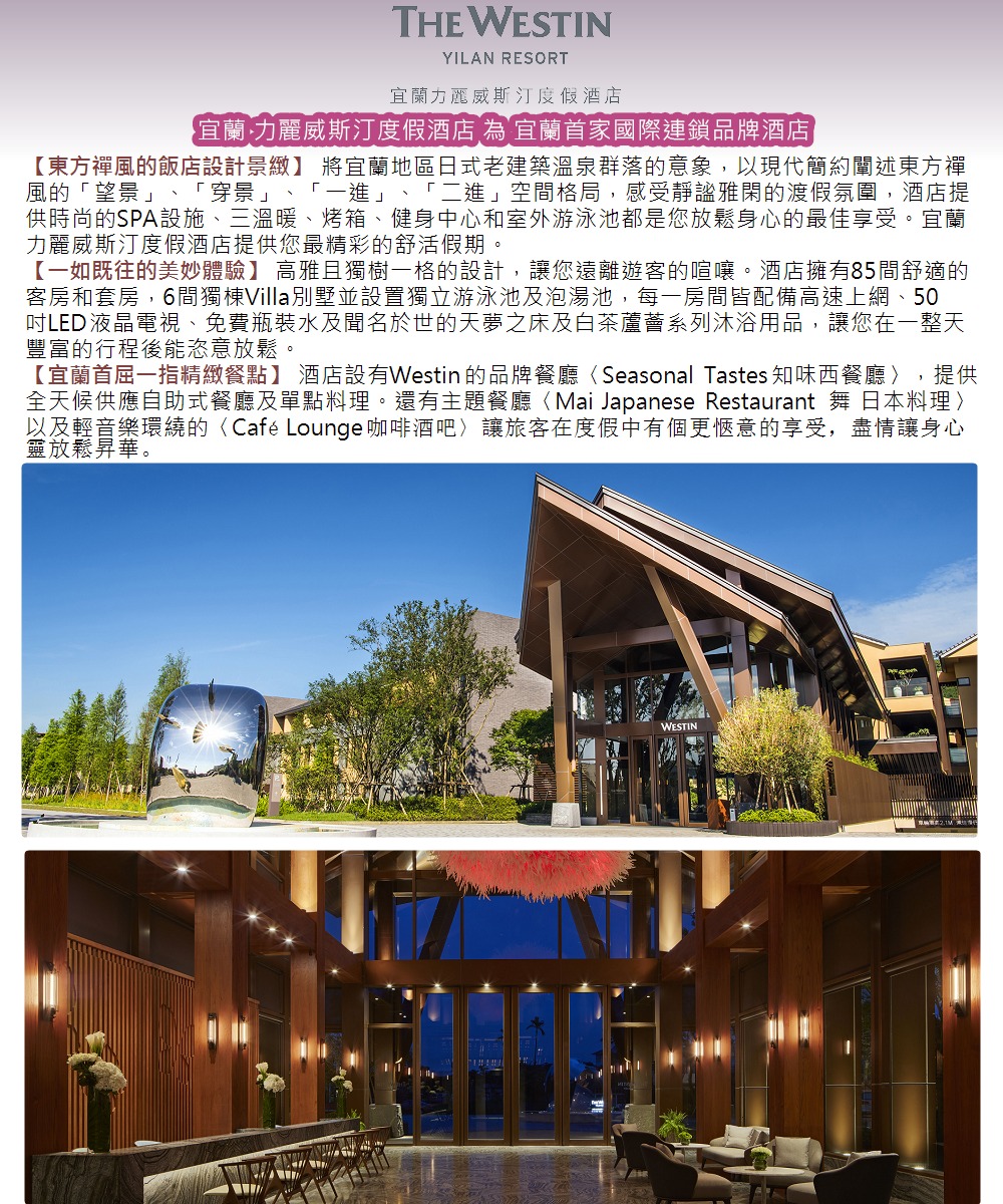 1.本券可至宜蘭力麗威斯汀度假酒店擇一方案使用。