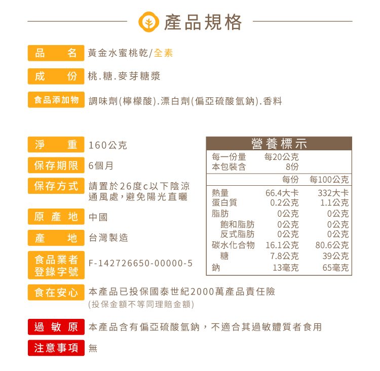 【每日優果】黃金水蜜桃乾160G 藏甜小圓罐