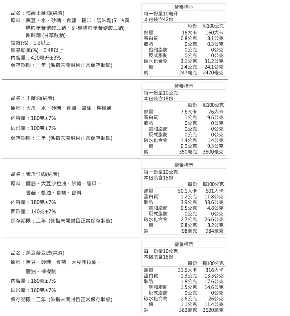 正蔭瓜:傳統台式醬菜,素食可食,是屬於口感較軟爛的醬瓜