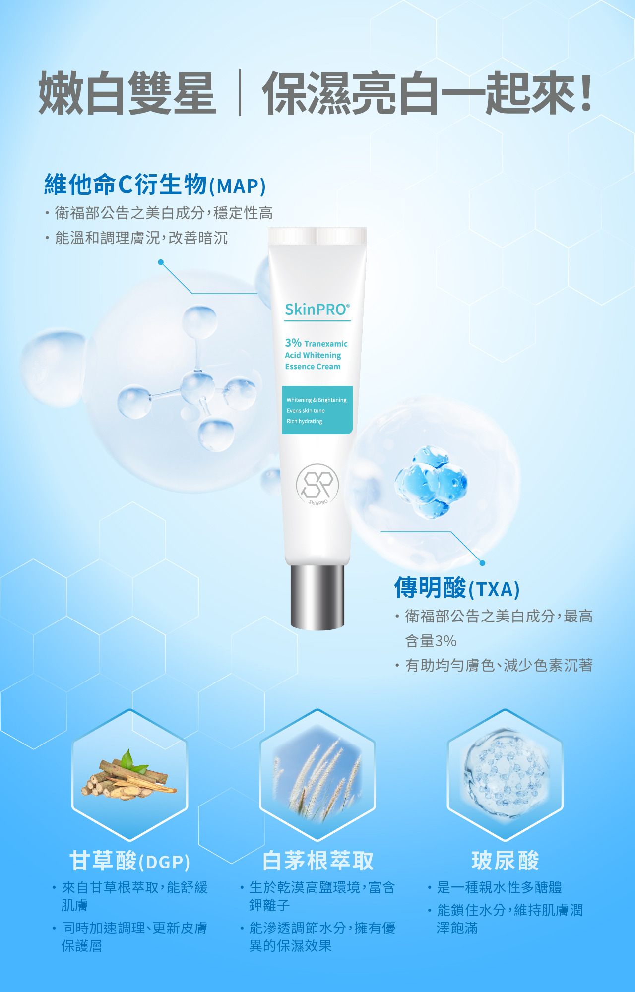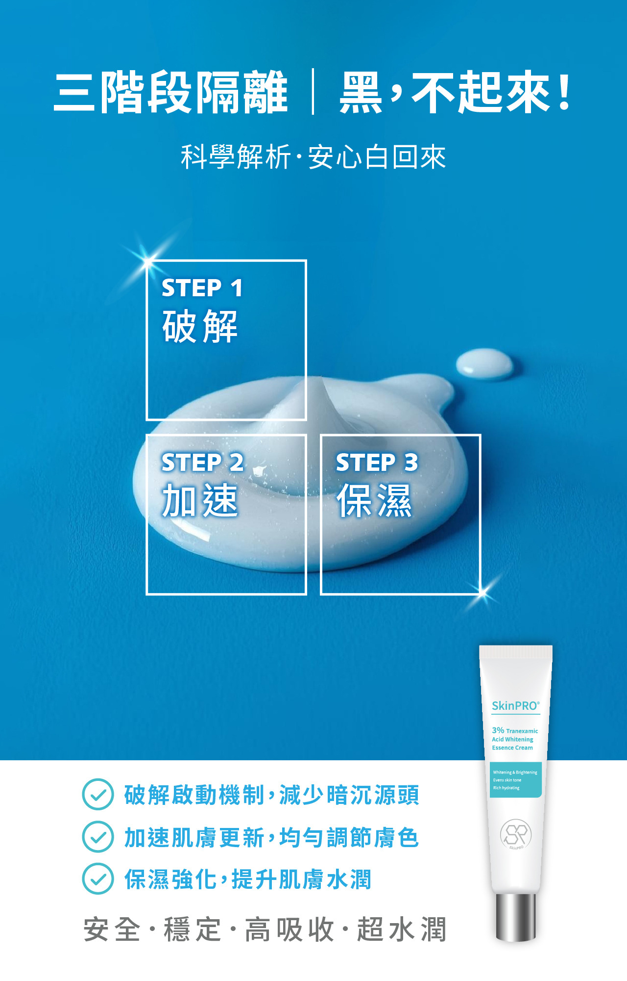 ◎ 傳明酸(3%):高濃度配方,改善色素沉澱