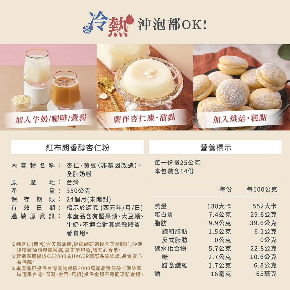 ★ 低溫烘焙經細緻研磨,口感溫潤滑順。