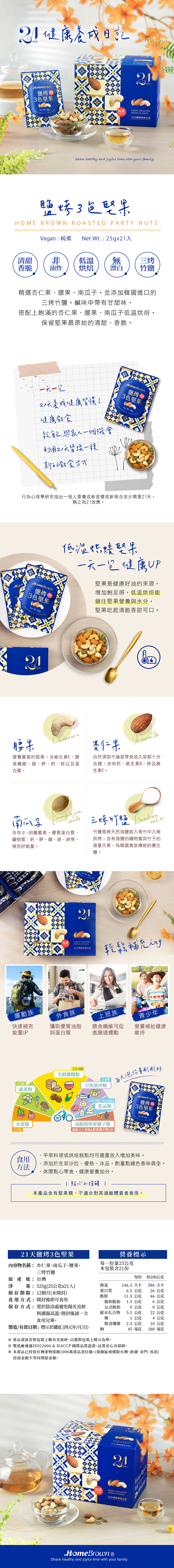 【紅布朗】21天鹽烤3色堅果 盒裝 (25g*21包)