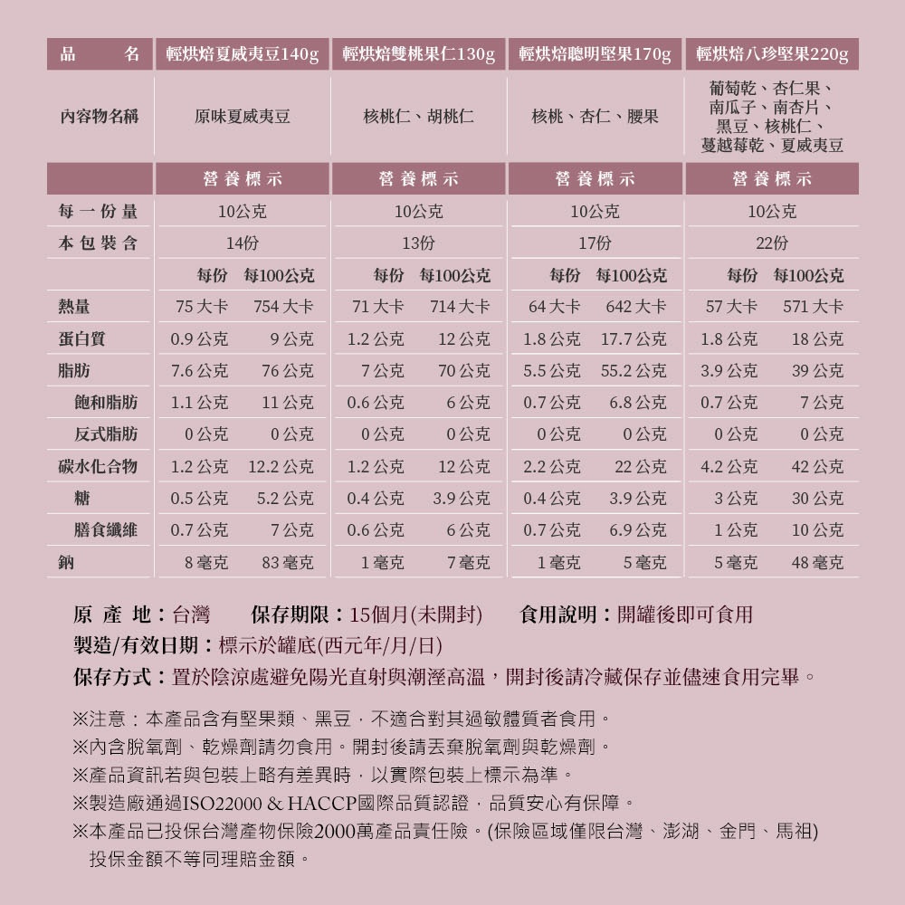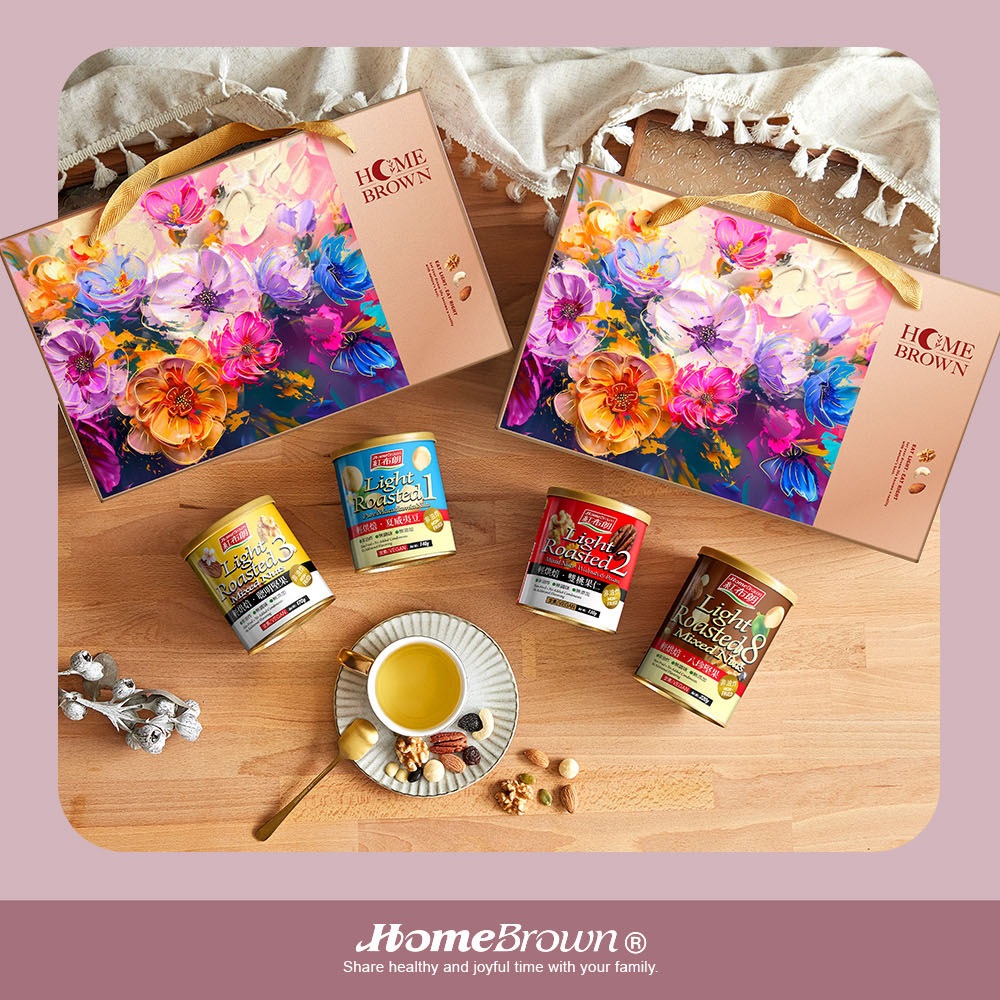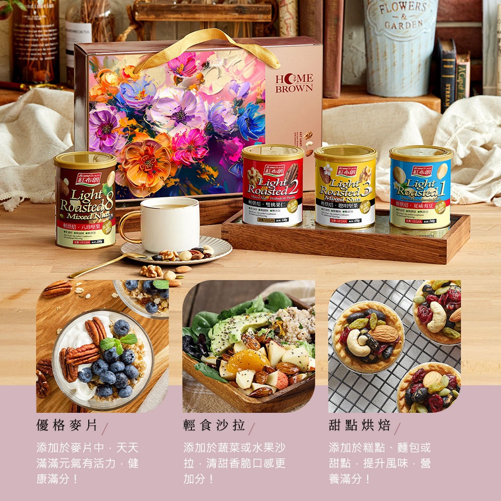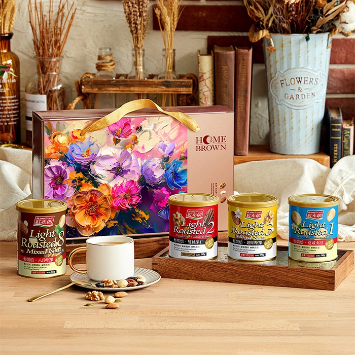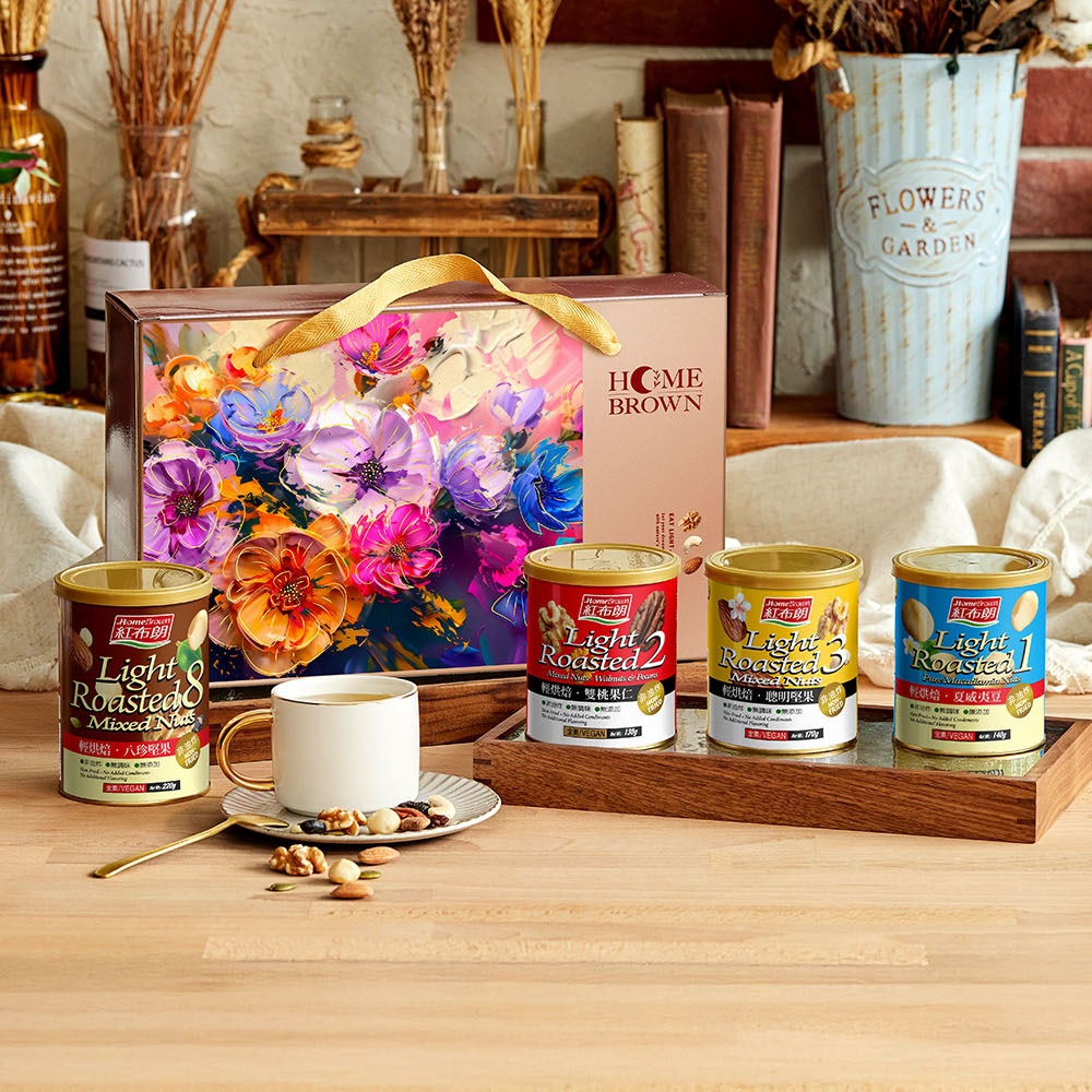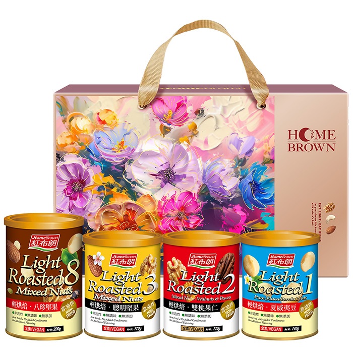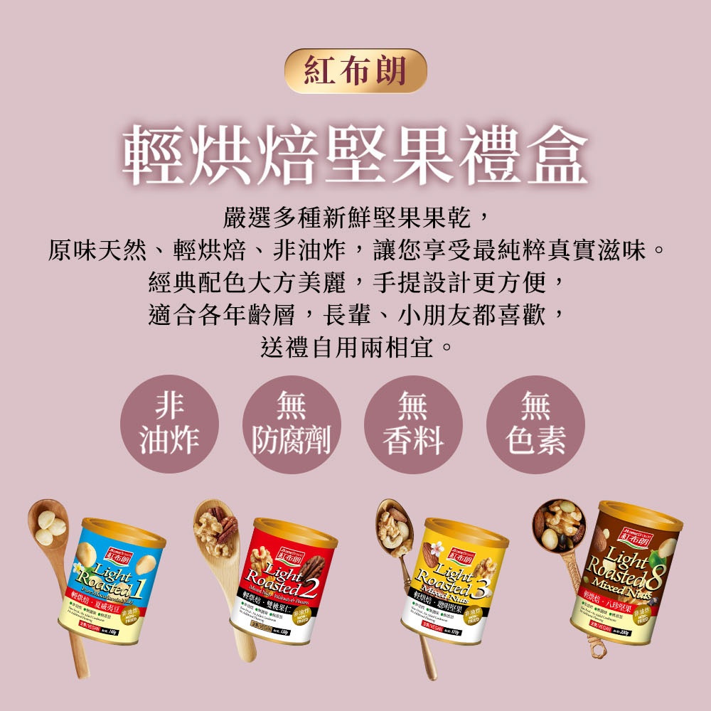 【紅布朗】輕烘焙純味堅果禮盒(八珍堅果+聰明堅果+雙桃果仁+夏威夷豆)