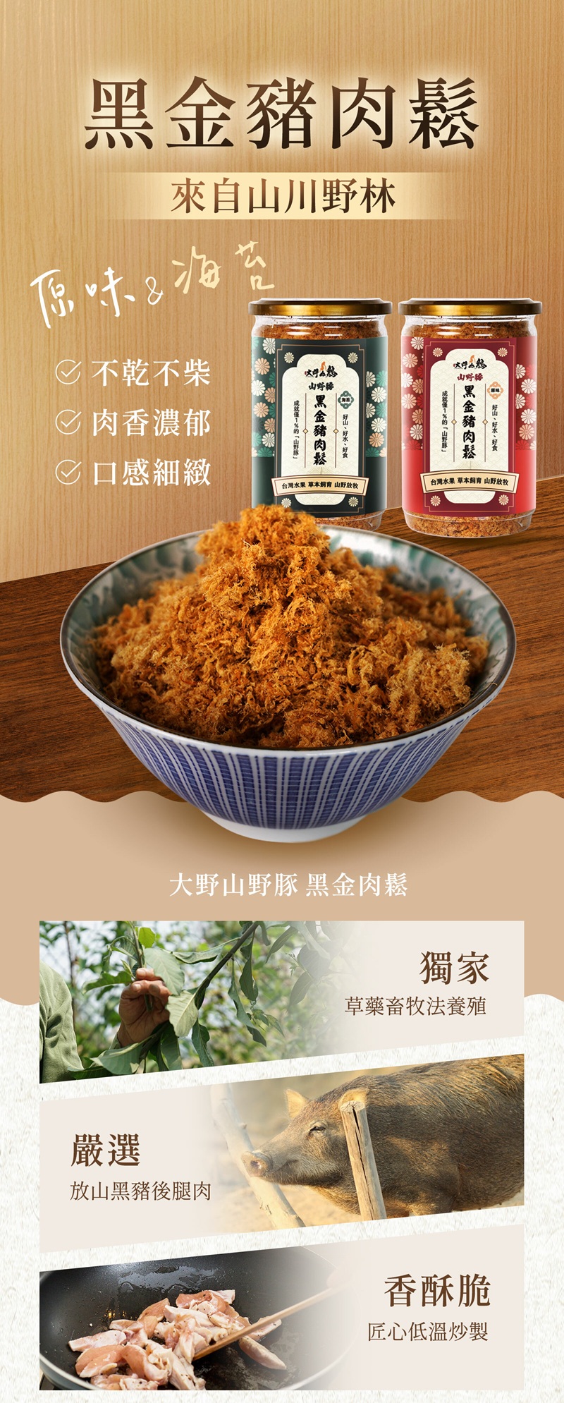 【大野山牧場】《常溫出貨》黑金豬肉鬆 | (經典原味/海苔風味)
