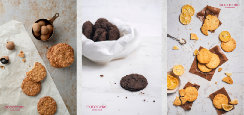 依循在地食材、環境友善包裝,不使用化學添加物理念,挑選具特色且生產穩定的台灣在地農產,來自台南東山的土窯柴燒桂圓、屏東香蕉、埔里百香果、台農93號紫心番薯、南投信義的天然梅粉......等,反覆嘗試篩選高溫烘焙後仍能呈現其特性及風味的食材,製作令人感到熟悉又創新的甜點。