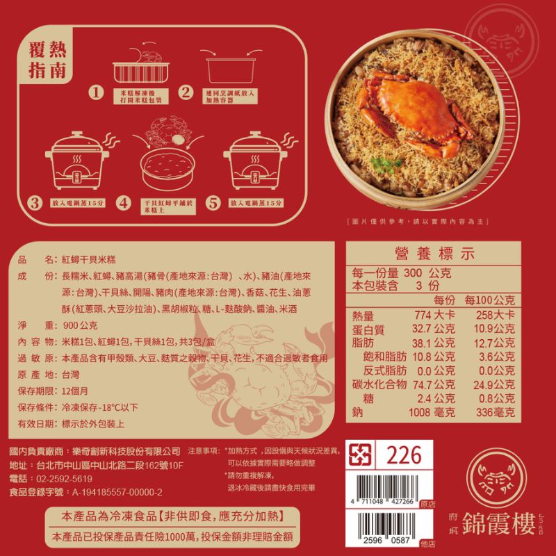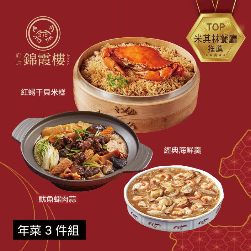 【錦霞樓】年菜3件組(米糕+海鮮羹+魷魚螺肉蒜)