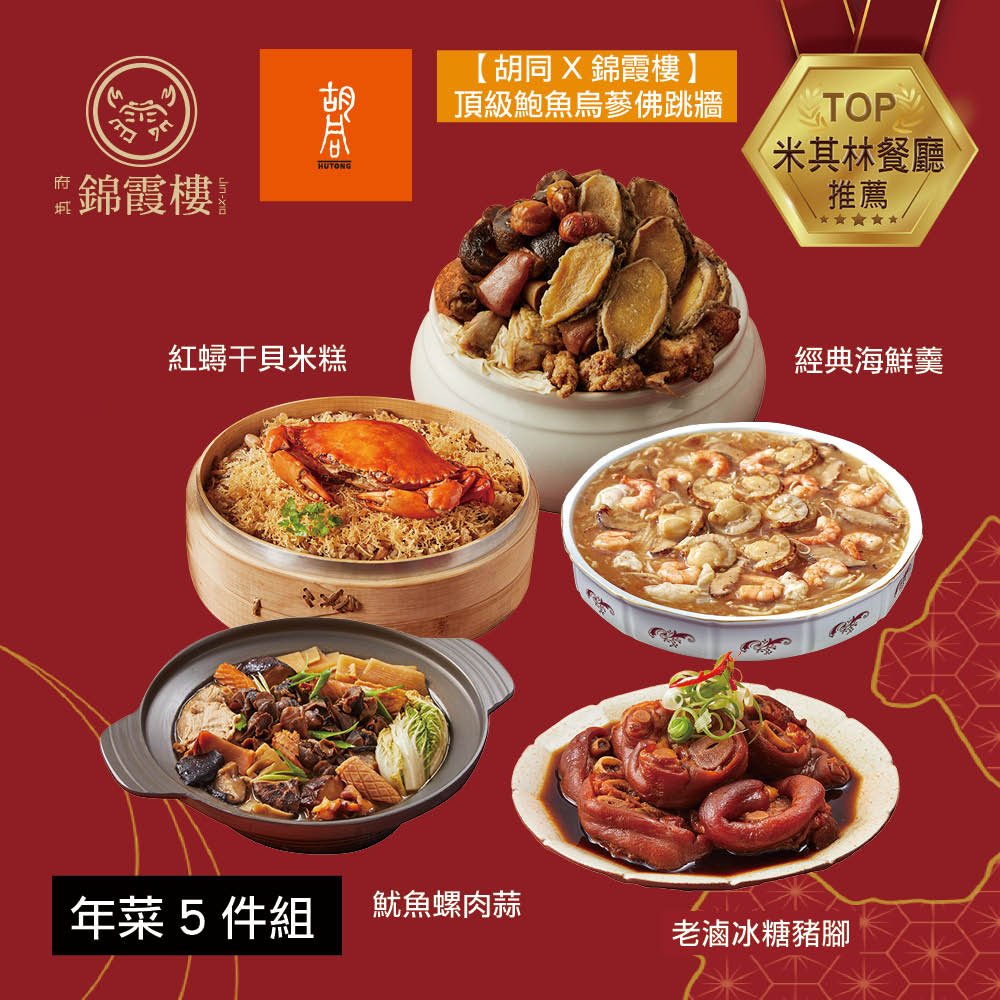 【錦霞樓】年菜5件組(佛跳牆+米糕+海鮮羹+冰糖豬腳+魷魚螺肉蒜)