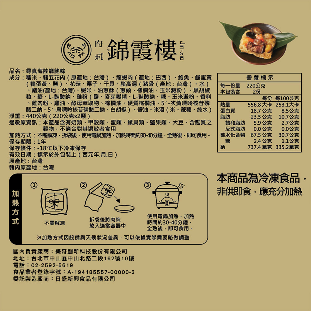 【錦霞樓】尋真海陸龍鮑粽禮盒(2入)