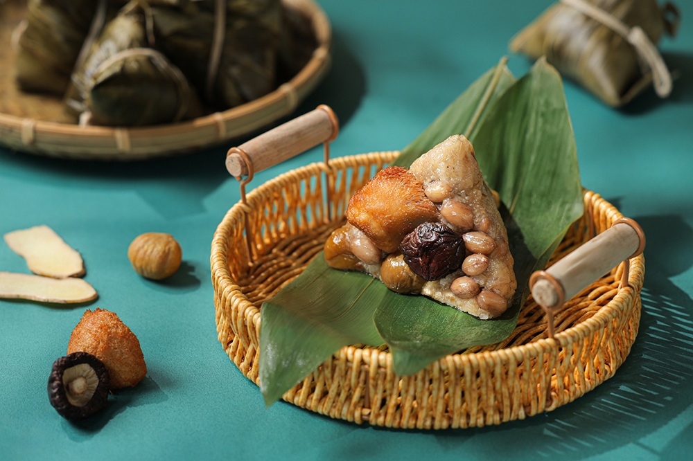 嚴選在地食材,北港綿密花生、埔里碩大香菇及鮮甜栗子入粽,Q彈糯米與鮮甜栗子及粽葉的清香完美融合。