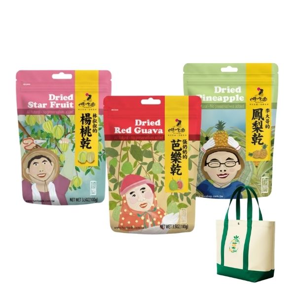 果乾帆布禮袋 紅心芭樂乾/鳳梨乾/楊桃乾 6包組