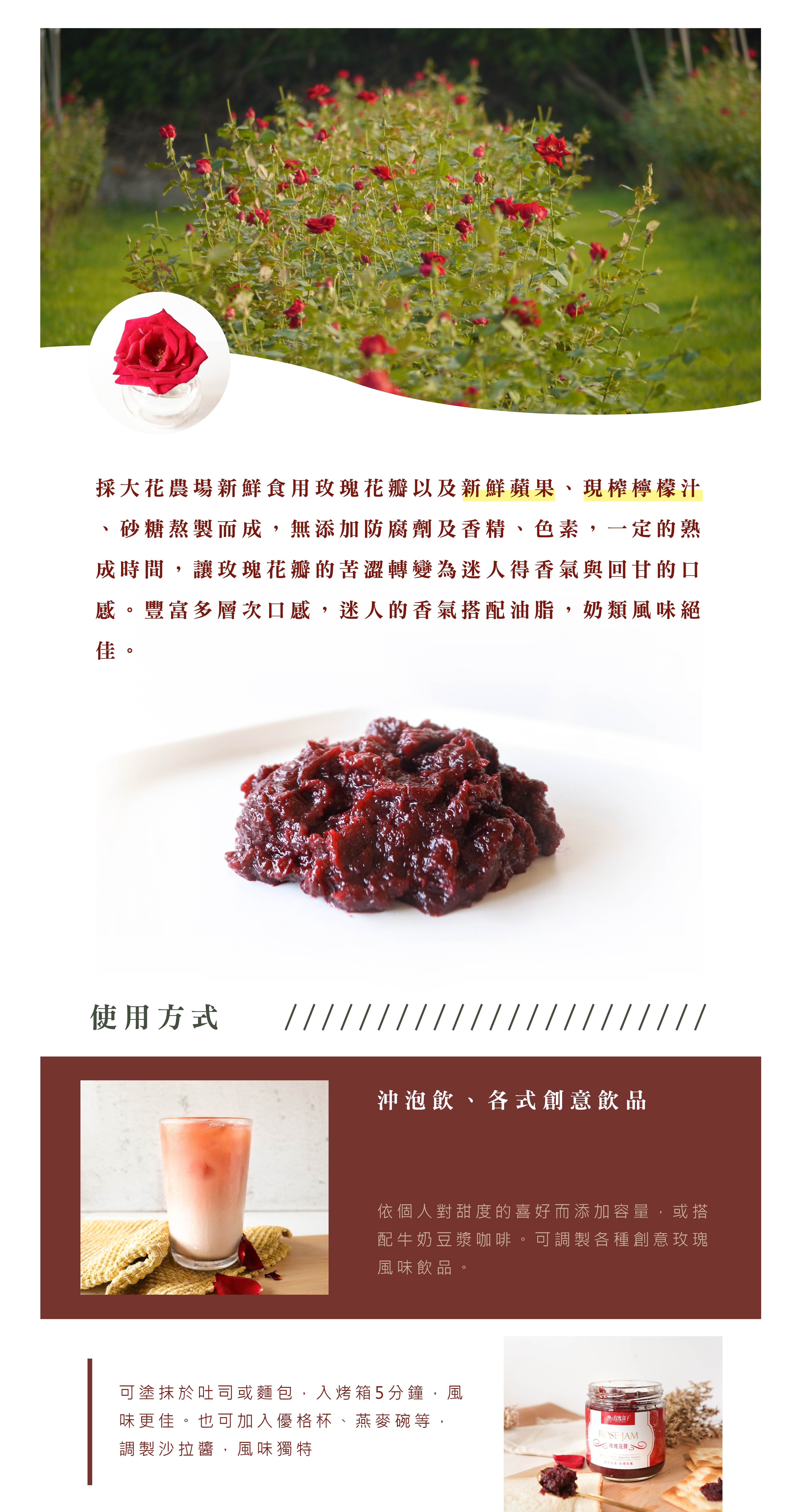 成 份:玫瑰花瓣、糖、蘋果、檸檬汁