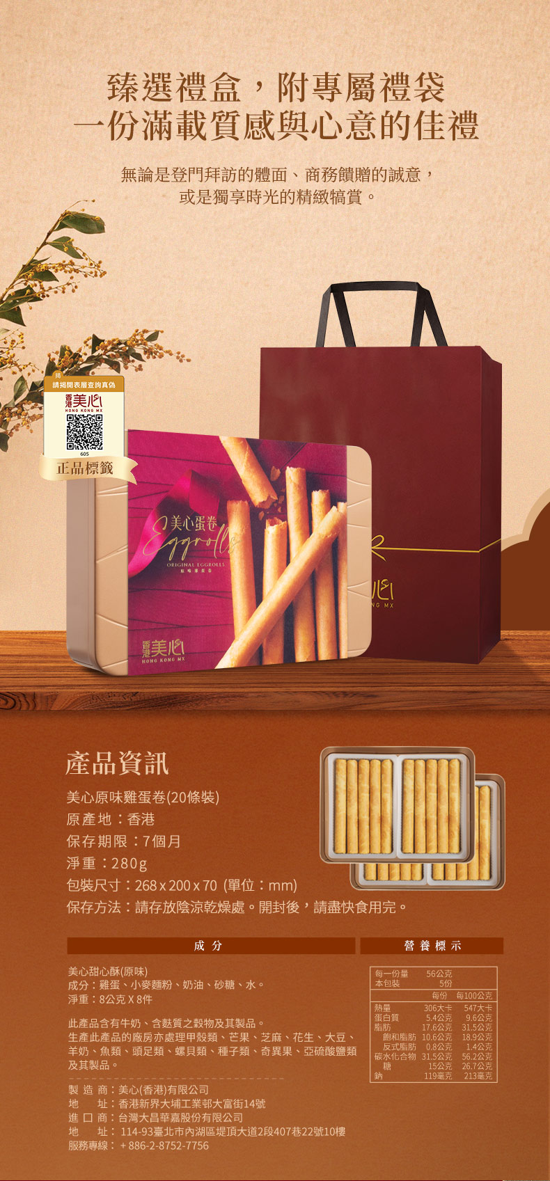 Pre Order美心 原味雞蛋卷 (20條裝)