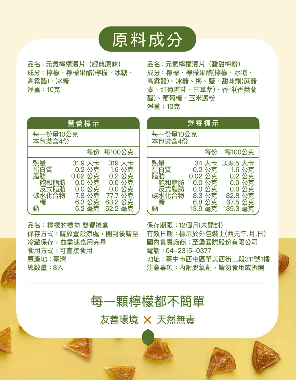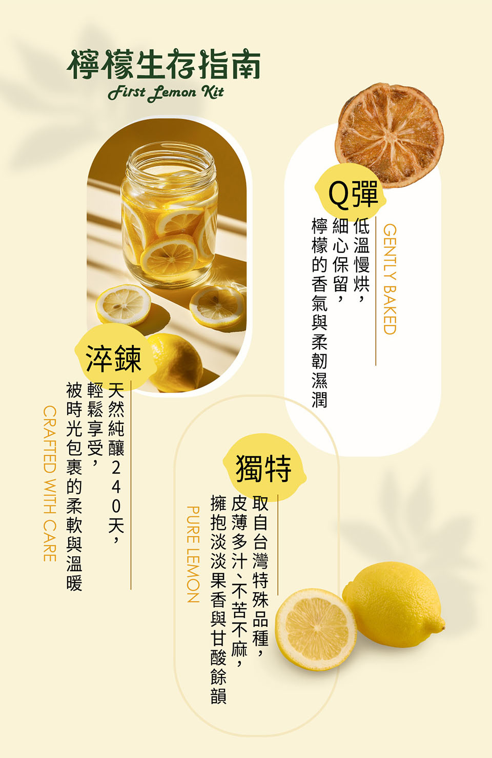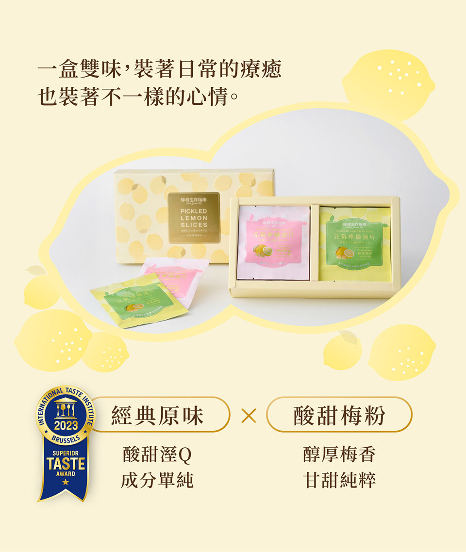 從包裝到風味,都藏著對細節的講究。精選台灣可食檸檬,純釀240天,搭配嚴選梅粉,揉合出酸甜交織、層次分明的滋味。單片獨立包裝,乾淨俐落,貼心方便。無論節日祝福、探訪親友,或作為質感伴手之選,都是一份體面不張揚的溫柔心意,剛剛好的美味,為日常與旅行添上一點感動與驚喜。