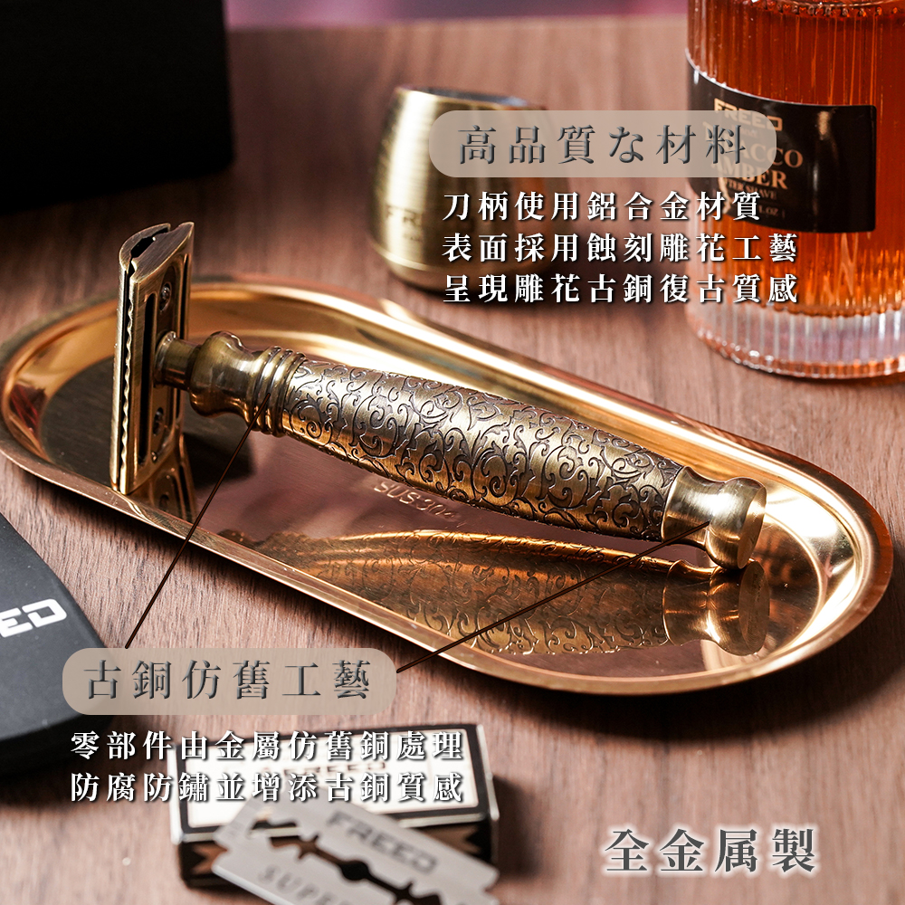 FREED 尊爵四件組雙刃刮鬍刀禮盒 - 仿古銅蝕刻雕花