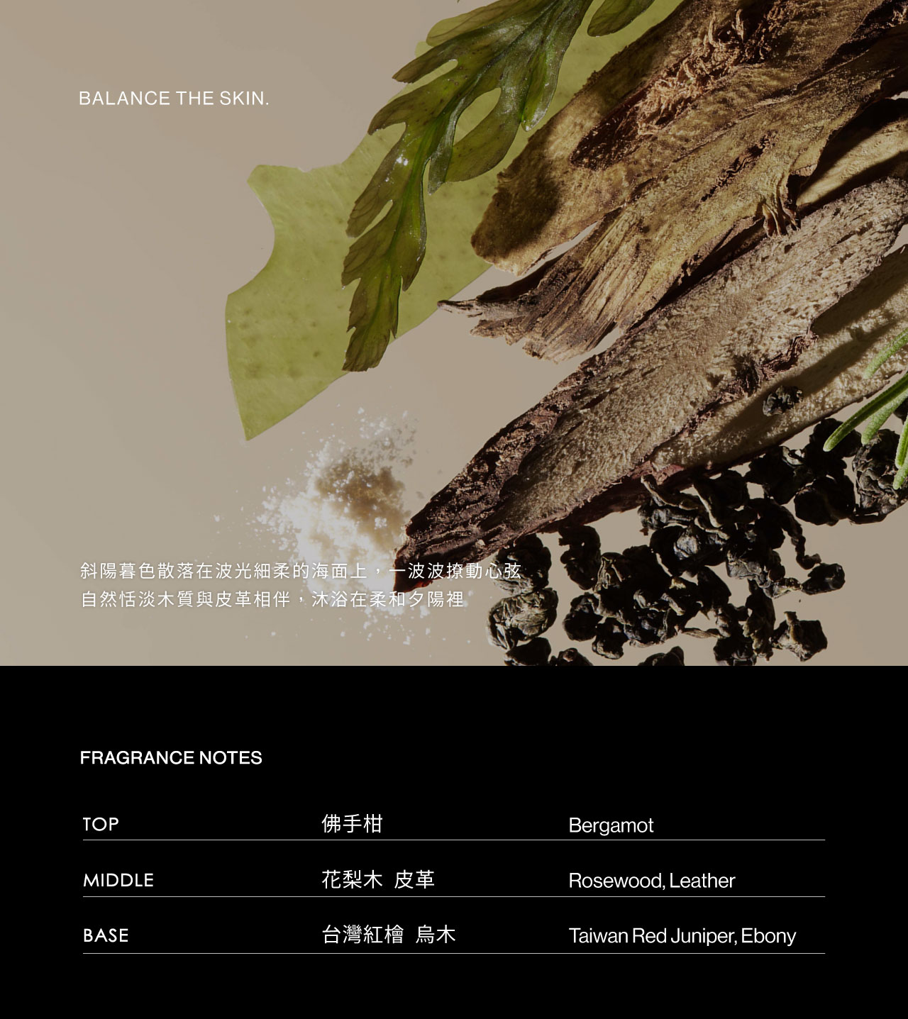 • 小眾沙龍香精油調和,佛手柑、花梨木、皮革、台灣紅檜與烏木完美層次的表現,在沐浴中享受大自然包圍,由明亮轉為夜晚沉穩的調性,有助於睡眠放鬆鼻息與思緒。