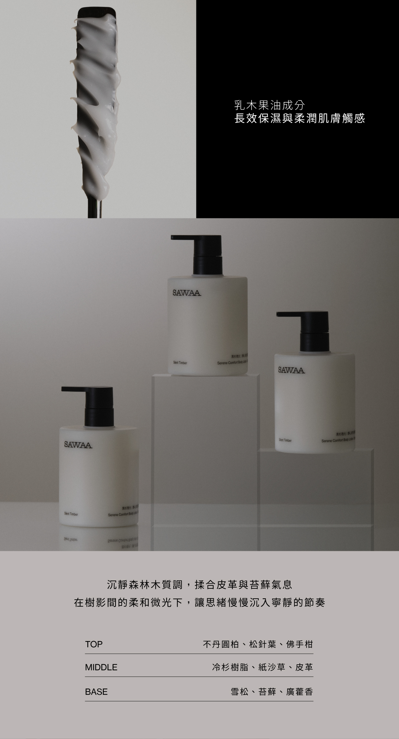 SAWAA 黑杉微光|靜心安恬身體乳 500ML