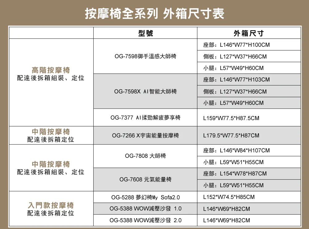 3. 如家中有舊OGAWA按摩椅(他牌恕無法處理,請洽詢該原廠)要搬運到其他地址,需視實際移動距離額外收取費用,會於電聯時再報價(也可事前洽詢)。