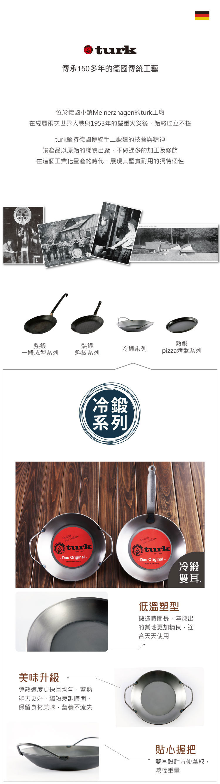 【德國turk土克鐵鍋】冷鍛系列 雙耳平底鍋24cm 鐵鍋 66924