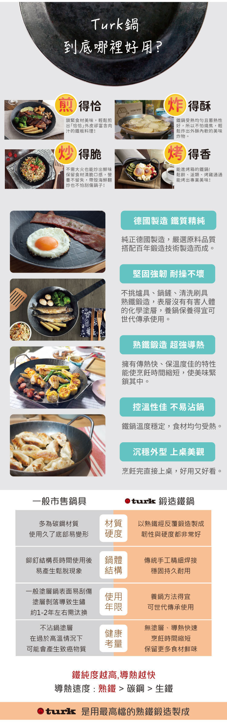 ☑ 減少用油,導熱均勻又快速