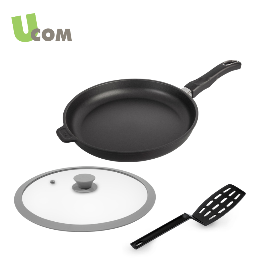 丹麥黑魔法晶鑽導磁單柄不沾早餐鍋28cm(含矽膠玻璃蓋)+瑞士平煎鏟不沾有縫 #GS-17128+28SG+2160