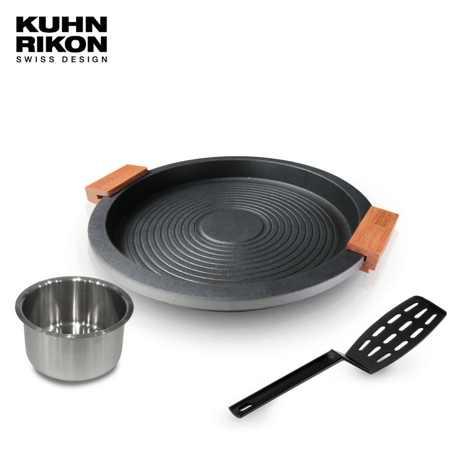 瑞康屋節能多工煎烤盤石墨黑+可導磁小火鍋450ML+瑞士平煎鏟不沾有縫 #2086+UC-1165+2160