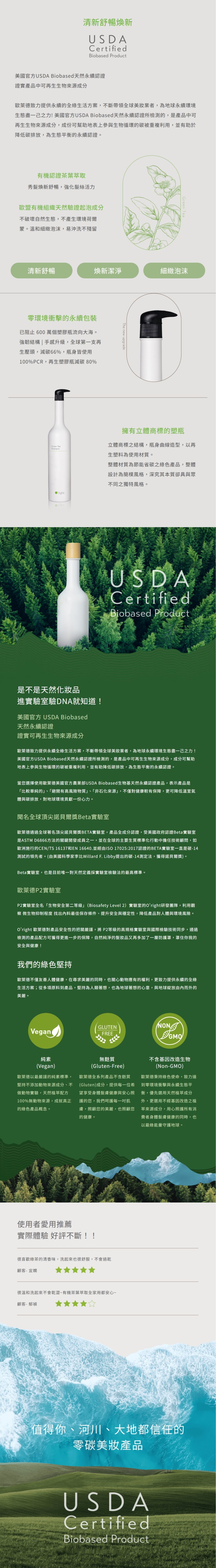 歐萊德 綠茶洗髮精1000mL