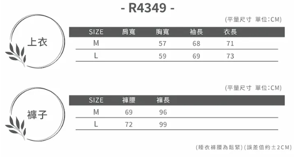Rosemaid 羅絲美 - 蓬蓬肉掌長袖衣褲裝睡衣【R4349】