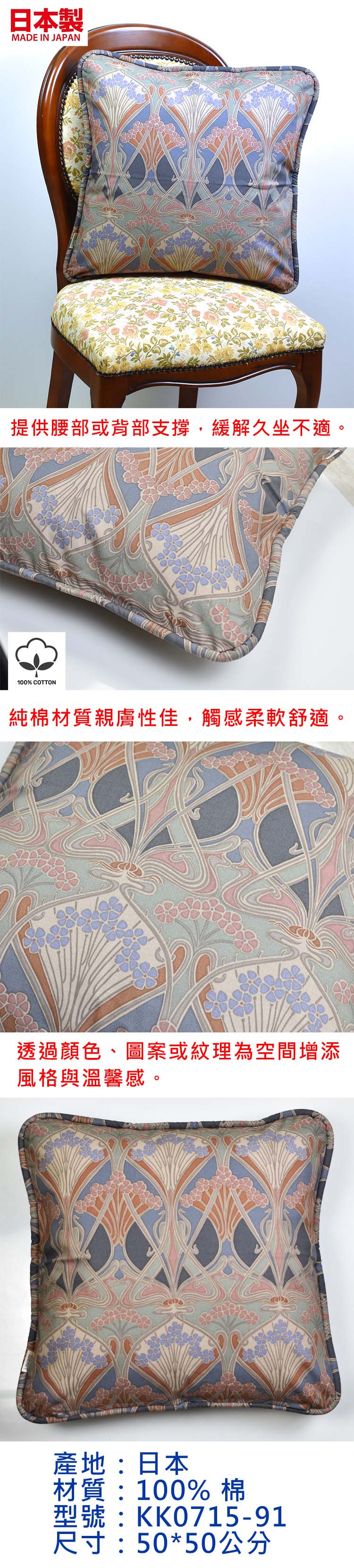 日本製椅靠墊KK0715-91 50*50公分(含棉芯)