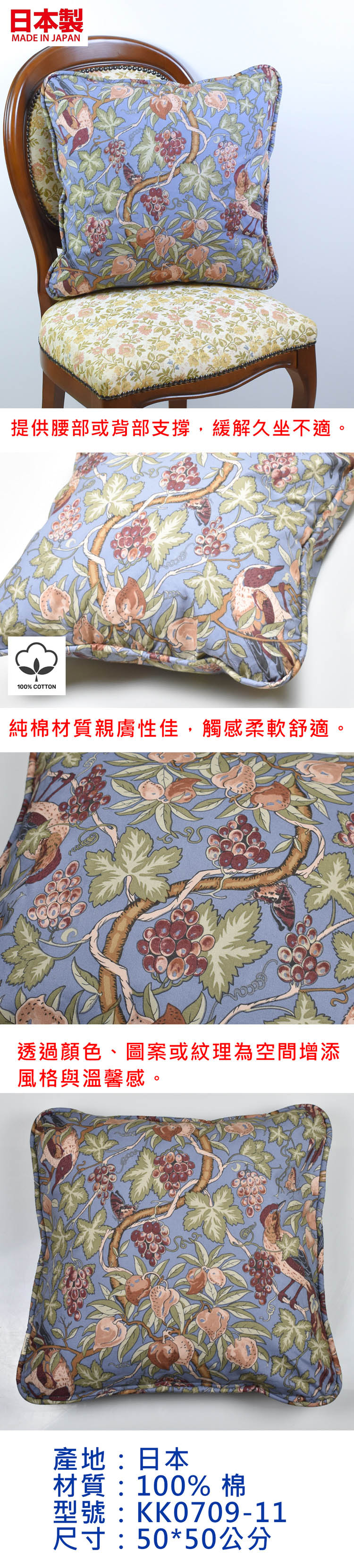 日本製椅靠墊KK0709-11 50*50公分(含棉芯)