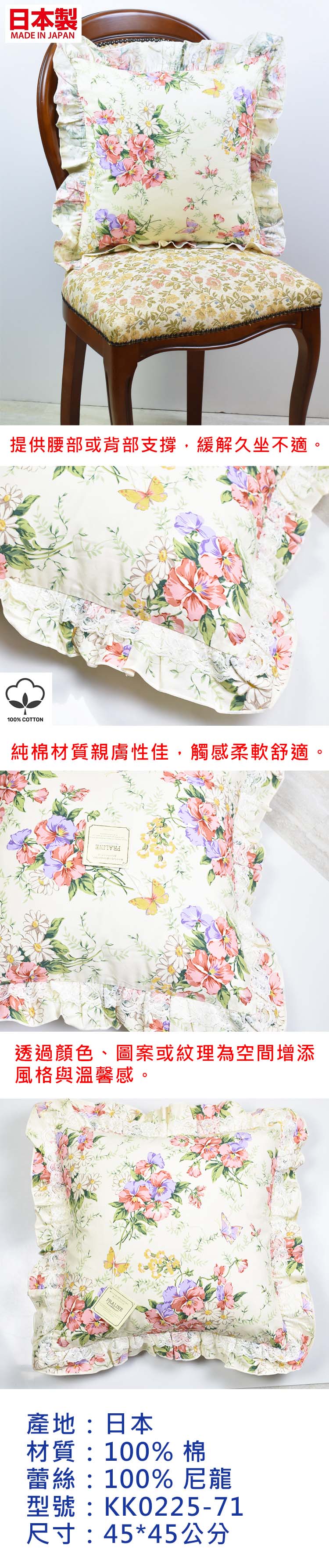 日本製椅靠墊KK0225-71 45*45公分(含棉芯)